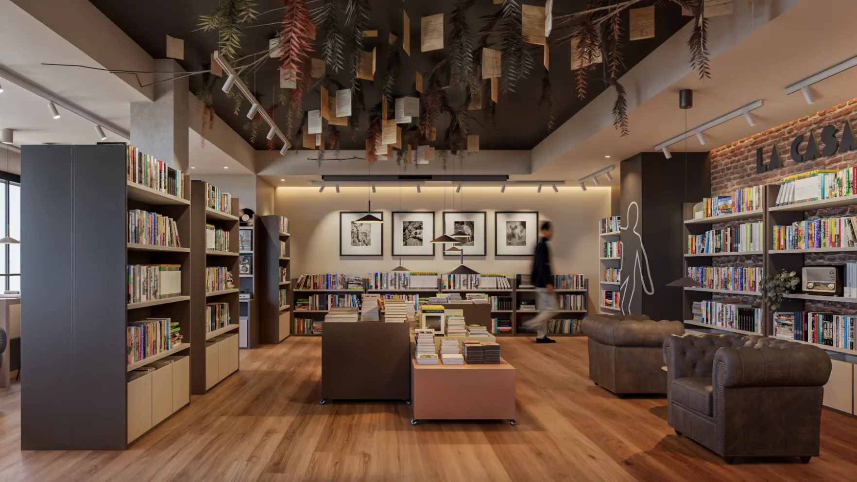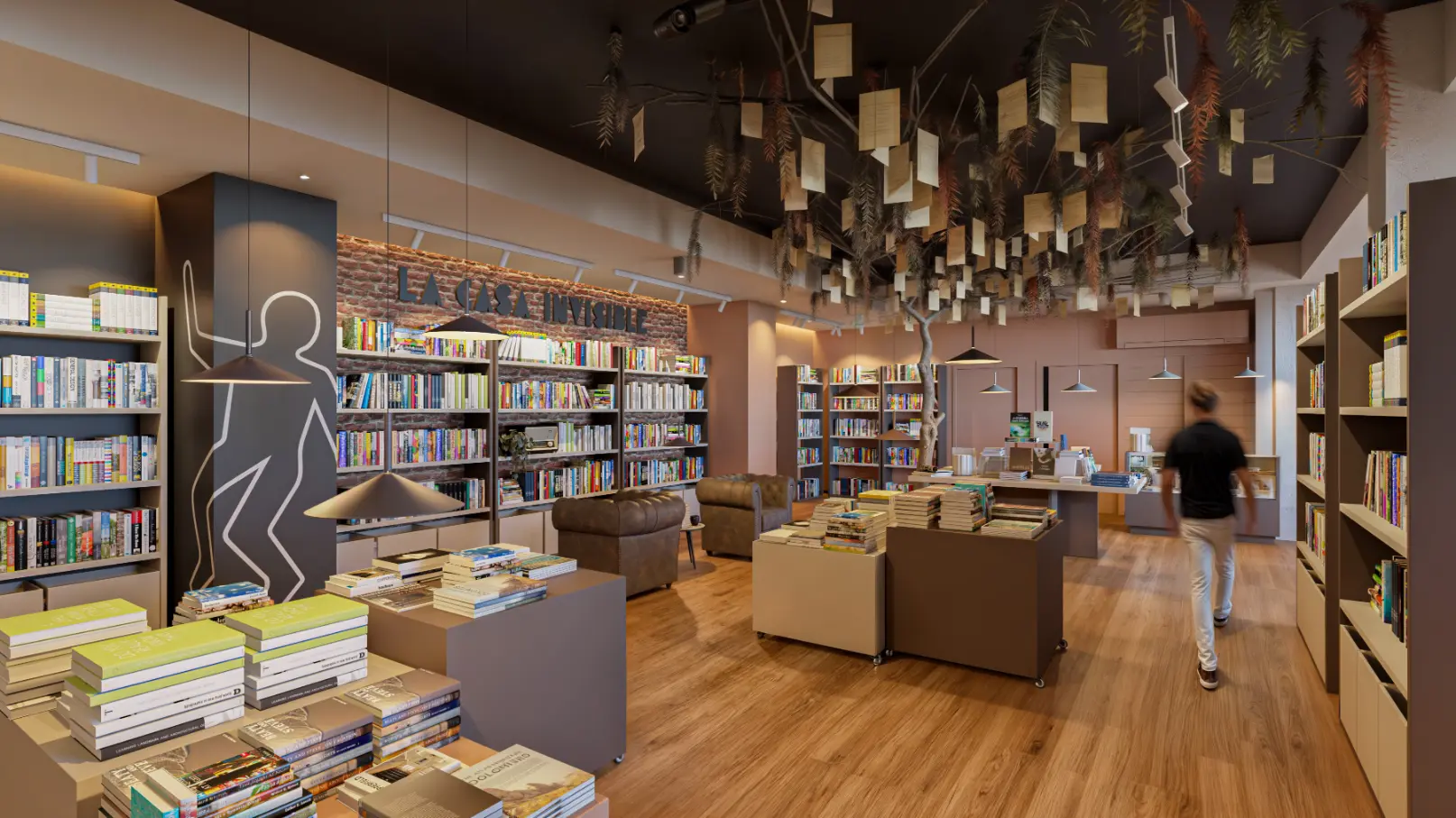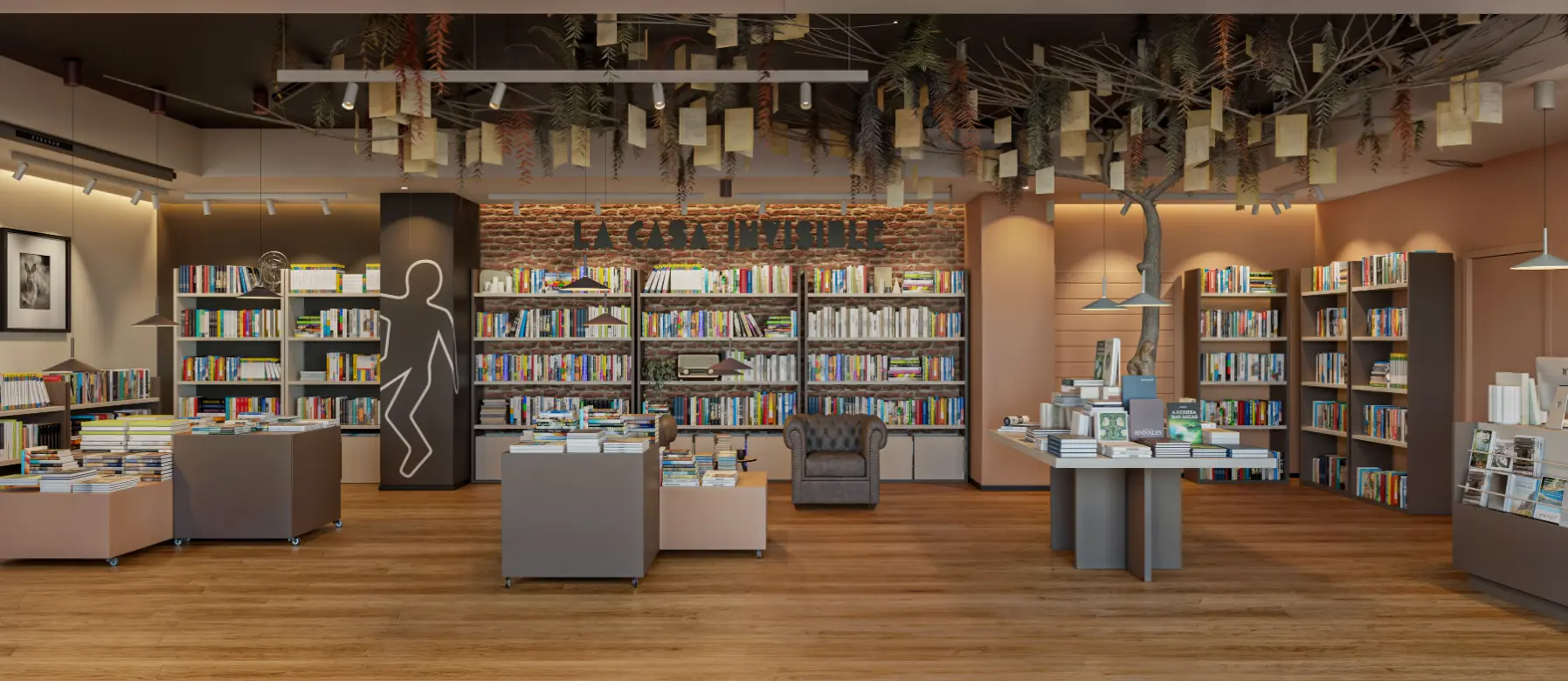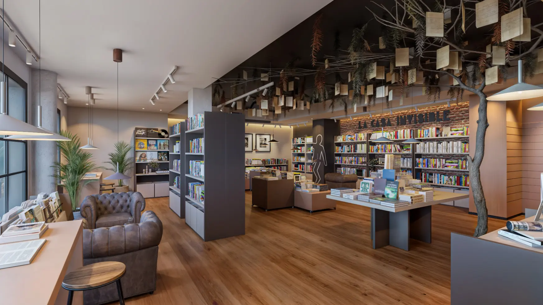 De un local en bruto en Paterna, nace un espacio cultural con identidad propia. El diseño combina materiales cálidos, ladrillo visto y una iluminación estratégica para generar una atmósfera acogedora y actual. El árbol escultórico, con hojas y páginas suspendidas, simboliza la lectura como experiencia viva y se convierte en el corazón del proyecto. Más que una librería, este espacio acoge también una cafetería y servirá como escenario para presentaciones de libros, proyecciones, exposiciones y actividades culturales, consolidándose como un punto de encuentro social y creativo en Paterna.